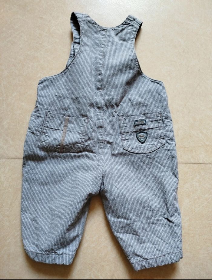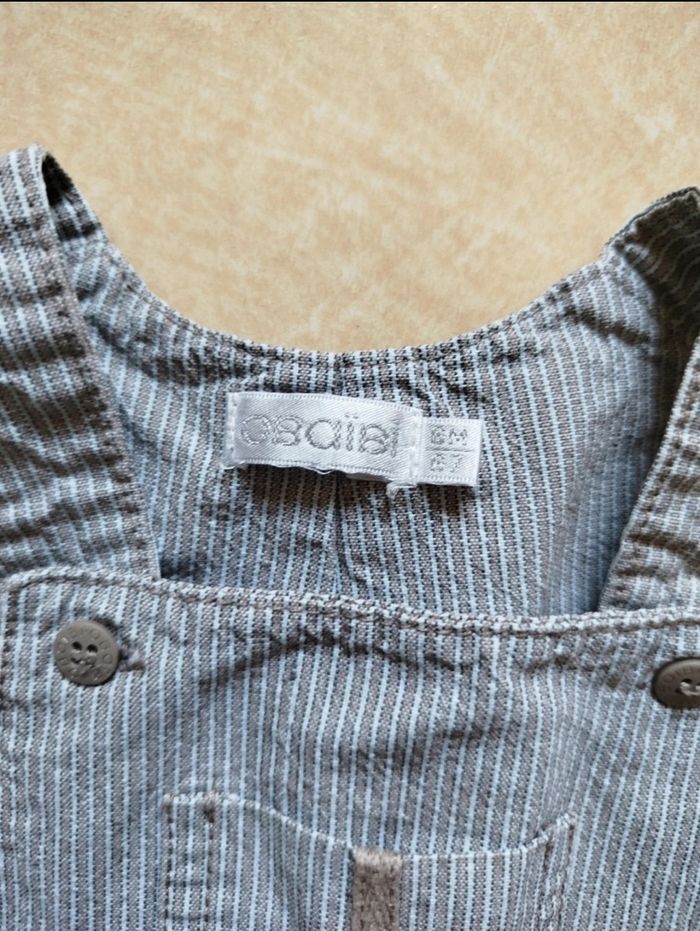 Salopette rayé grise et bleu ciel. Obaibi, 6mois. G170