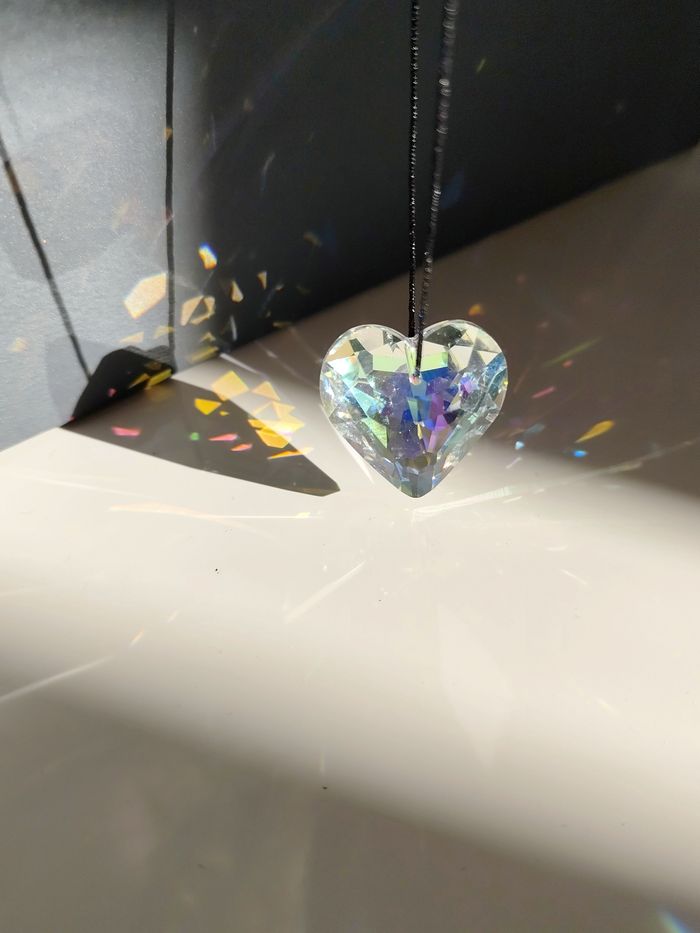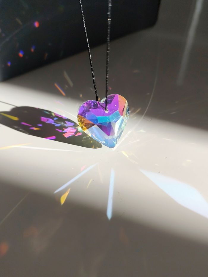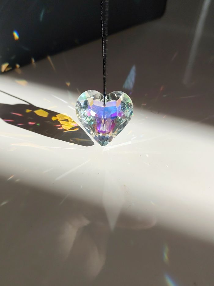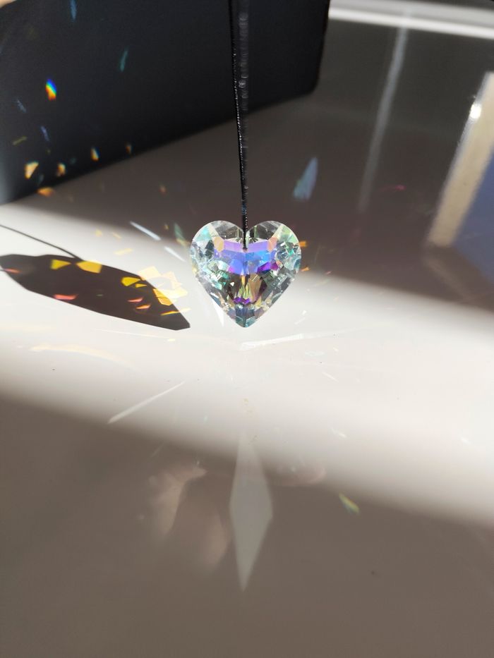 Attrape soleil / Sun catcher Cœur multicolore effet cristal facetté, capte parfaitement la lumière du soleil et projette de magnifiques reflets arcs-en-ciel ! Parfait pour la décoration et pour créer une ambiance avec les reflets du soleil. • Dimensions : env. 3 cm de diamètre : env. 22 cm avec le fil ✅ État: neuf, jamais utilisé #cristal #bouledecristal #suncatcher #décorationinterieure #arcenciel #refletsdelumiere #décomaison #lumièredujour #ambiancezen #objetlumineux #crystalball #décoensoleillée #prismeoptique #coeur
