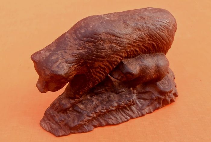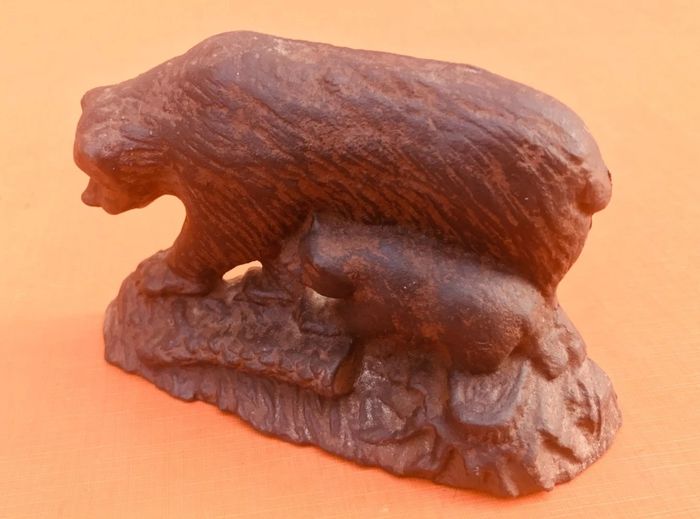Cale / Butoir de porte en fonte Maman Ours et son petit  - photo numéro 1