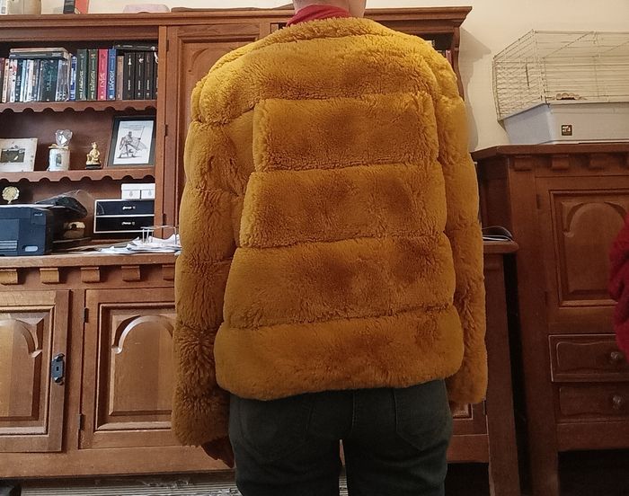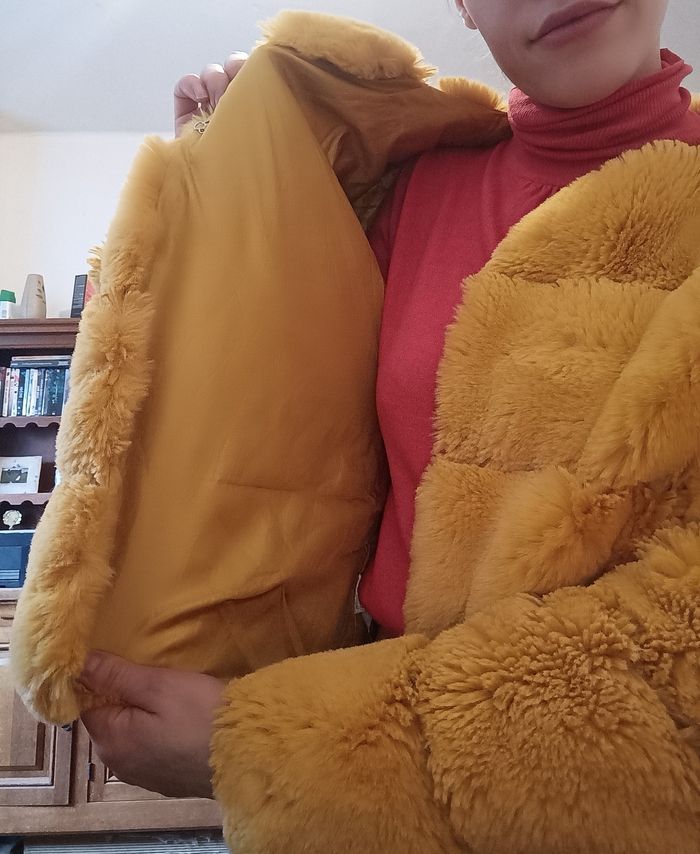 Vestes chaudes, moutarde avec fourrure fausse et doublure synthétique. Taille M. En excellent état.