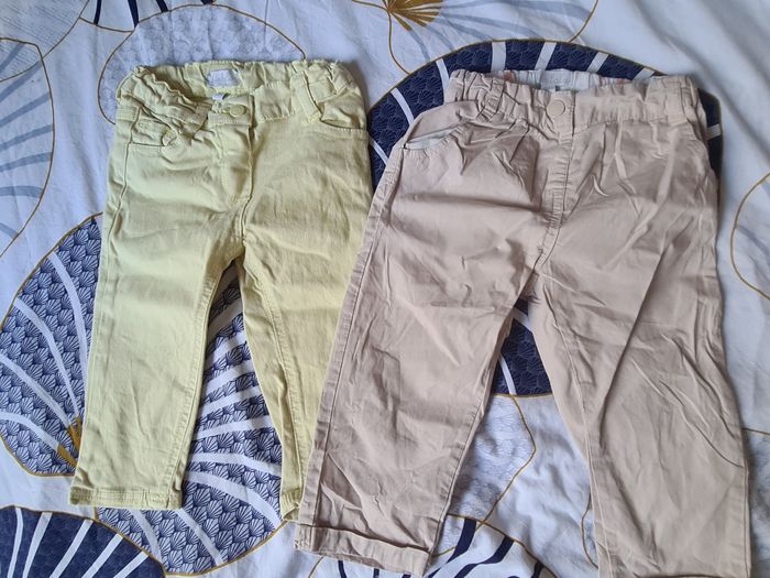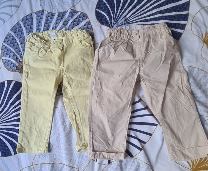 2 pantalons. 18 mois.  Jaune,  beige. Kimbaloo - photo numéro 1