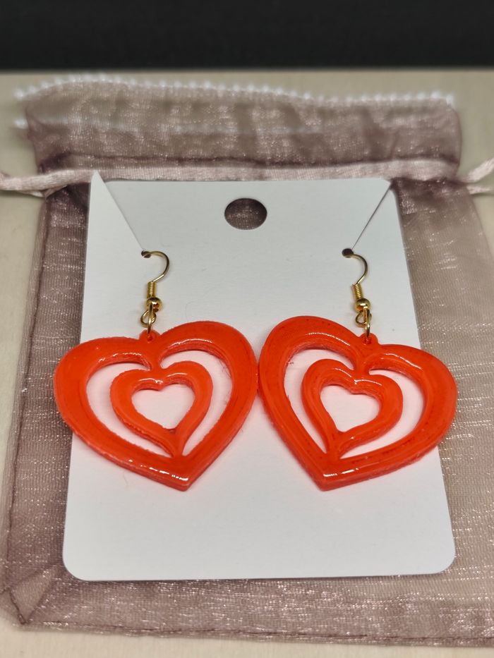 Boucles d'oreilles en forme de cœur Couleur rouge cerise Impression 3D avec finition résine