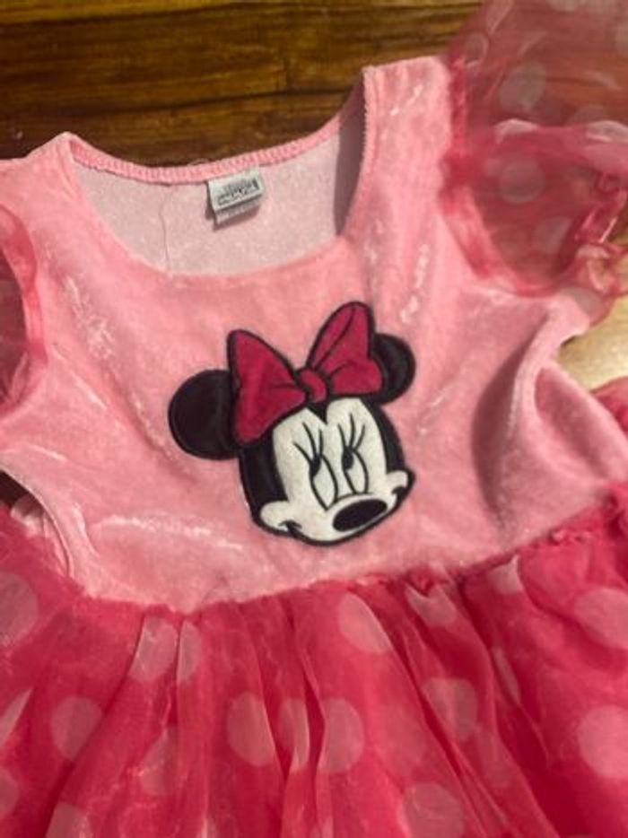 Vends une petite robe Minnie pour bébé fille Taille : 24 mois Marque : Disney Couleur : rose Le haut est en effet velours et le bas est en effet tulle, il est doublé Idéal pour une fete d’anniversaire, carnaval ou tout simplement pour s’amuser !