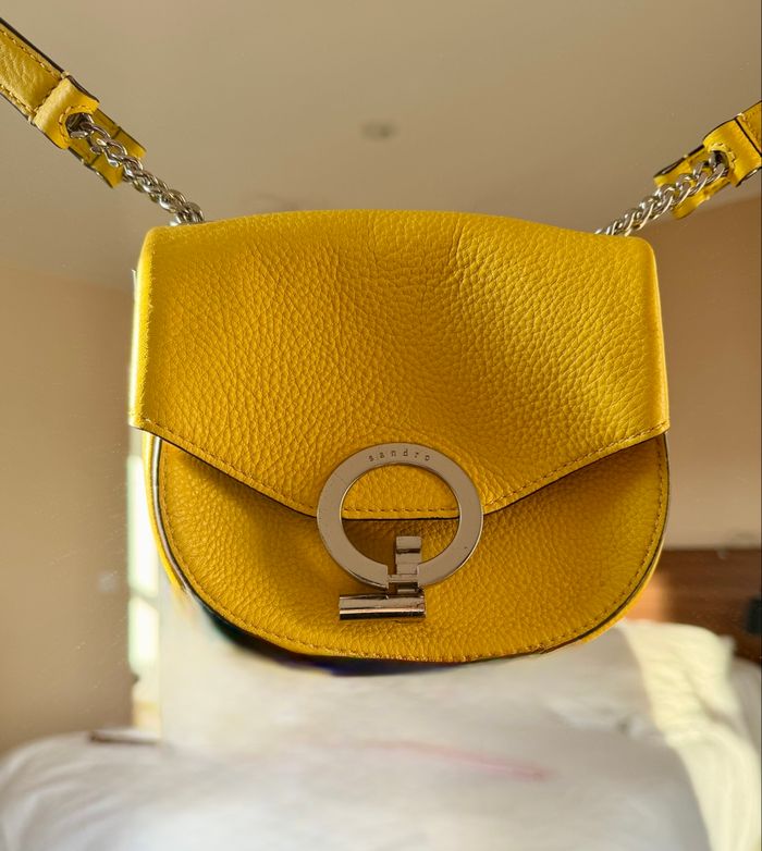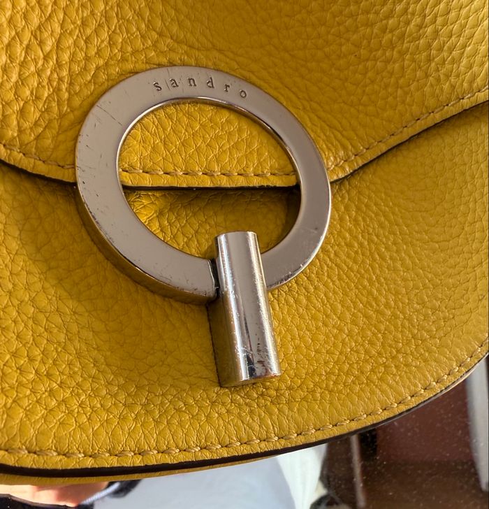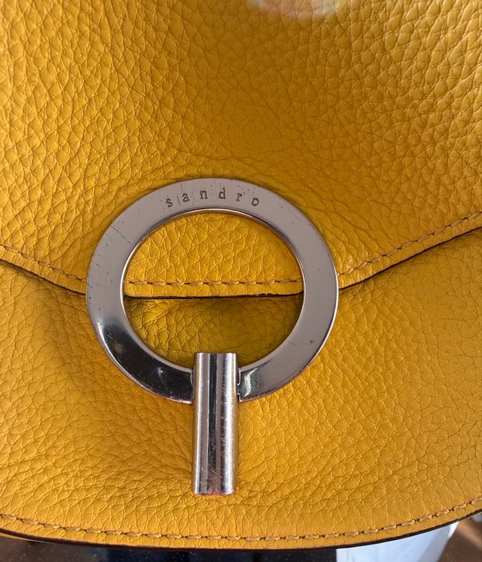 Préparez votre été avec ce magnifique sac à main qui donnera du peps à vos tenues Sac Pépita PM SANDRO état impeccable sauf fermoir qui présente des traces d’usure (voir photo) • 100% cuir de vachette, • Sac en cuir grainé, • Porté épaules ou cross-body, • Fermoir coulissant (voir défaut en photo) • Un compartiment et une poche plaquée extérieure, • Doublure contrastée en suédine état impeccable , • Dimensions : L 18 cm x H 15 cm x P 6 cm environ. Envoi rapide et soigné