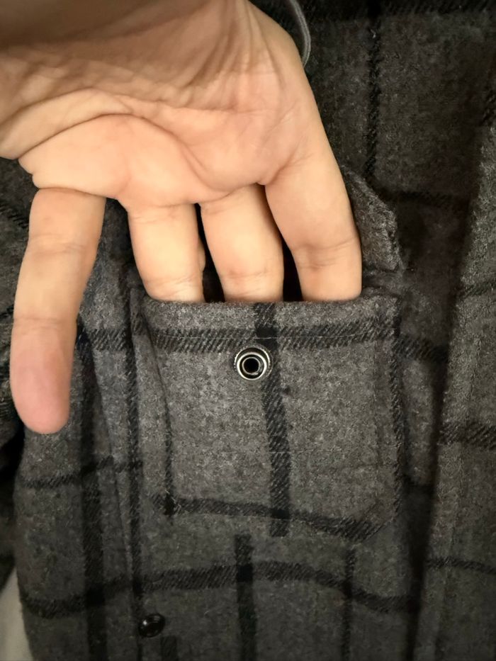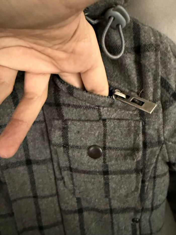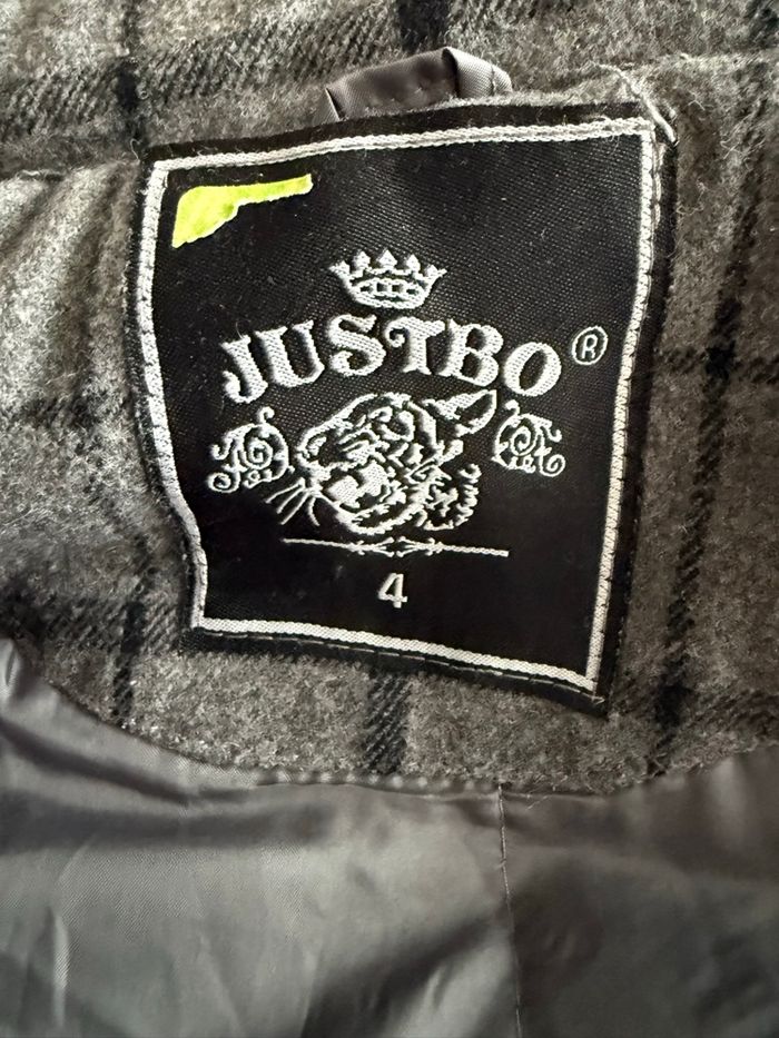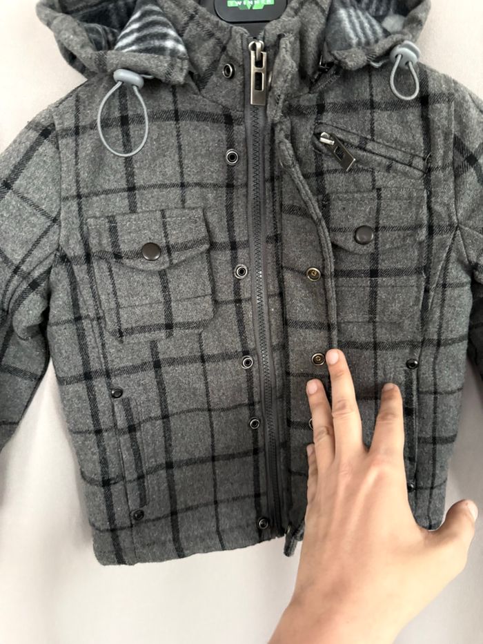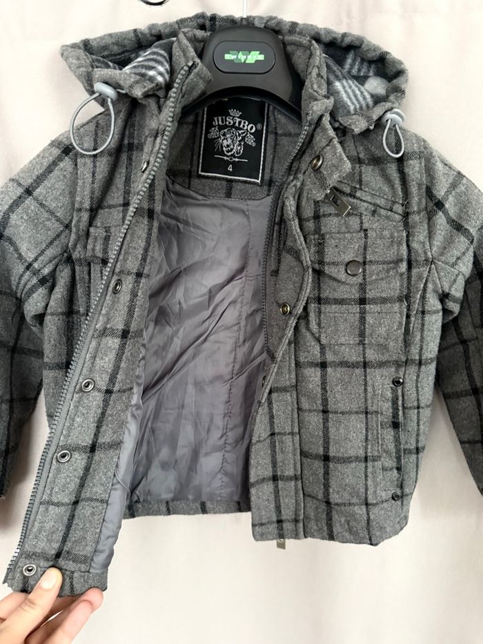 Bonjour à tous, Je vends un blouson à capuche et à carreaux de la marque Justbo de couleurs gris et noir en matières laine, viscose et polyester. La veste ferme avec une fermeture éclair et des pressions. Si vous avez des questions ou vous voulez plus d’informations (photos ou mesures), je suis disponible.