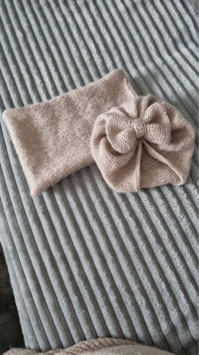 Bonnet echarpe neuf 2 ans Couleur beige brillant
