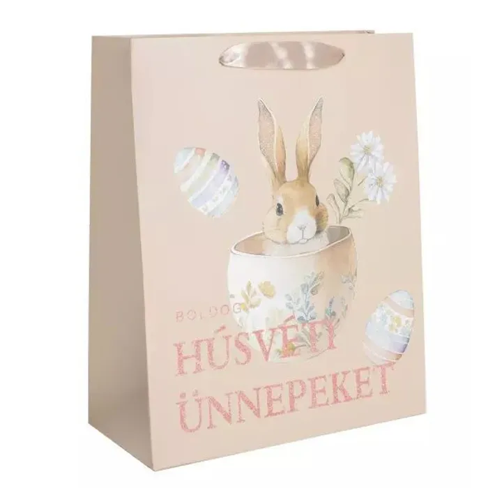 Sac cadeau motif lapin « joyeuse fête de Pâques » 18 x 23 x 10 cm Neuf