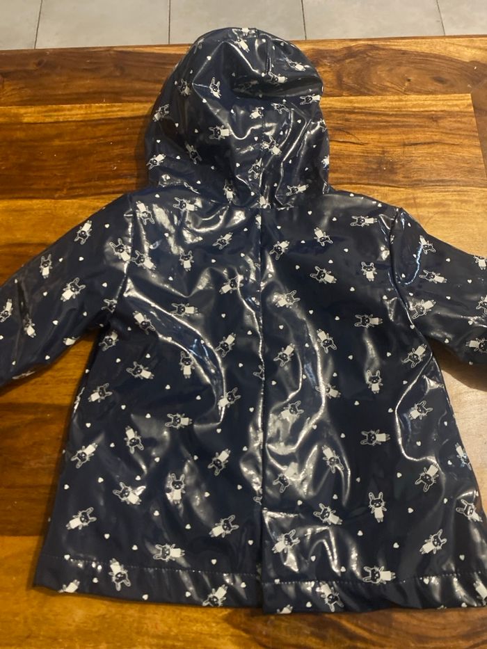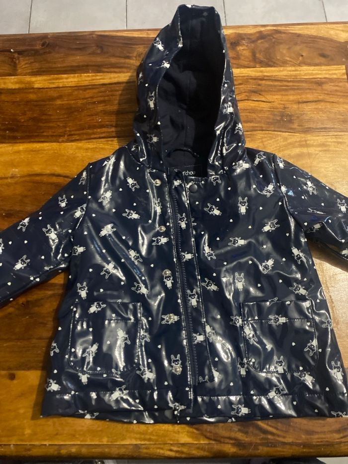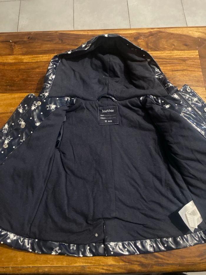 Vends un imperméable bébé fille Taille : 12 mois Marque : bout’chou Couleur : bleu marine avec motifs lapins Contient une capuche et 2 poches #impermeable#bebefille#lapins#bleumarine#pluie#bebe#12mois#fille