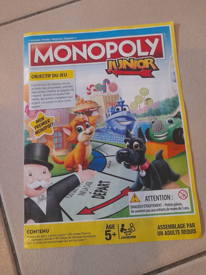 Monopoly junior 5 ans et plus, complet. Bon état, carton légèrement usé voir photo.