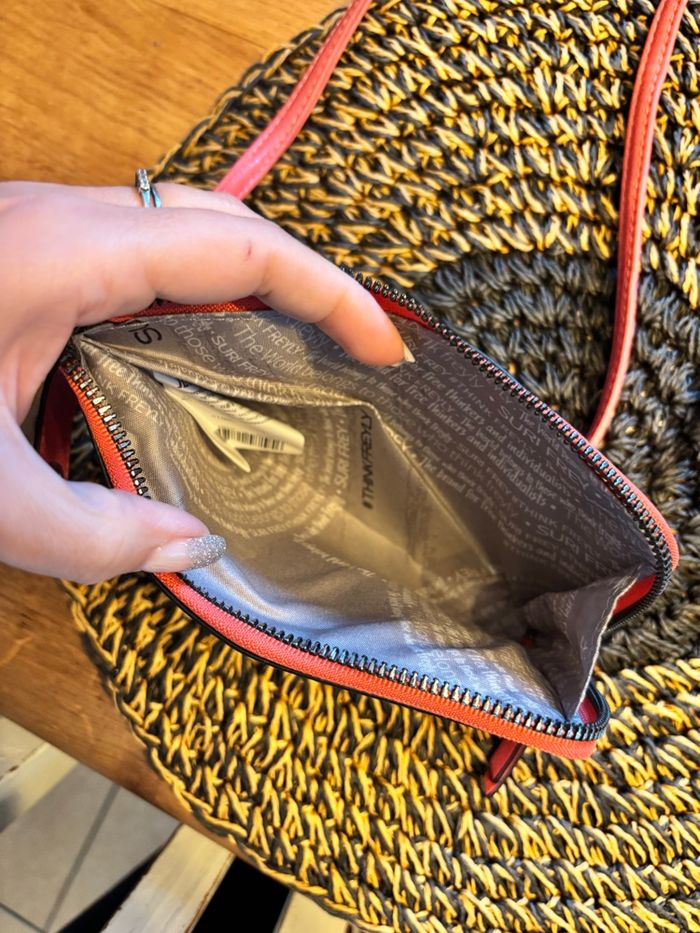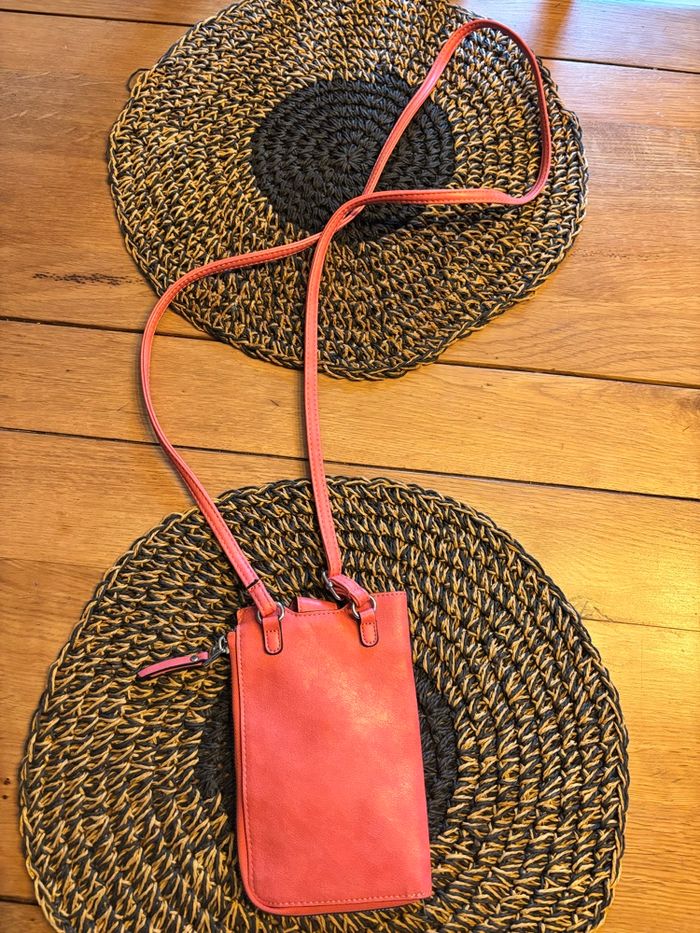 Pochette téléphone + papier corail suri Frey très bon état Un côté avec bouton pression et un côté avec fermeture