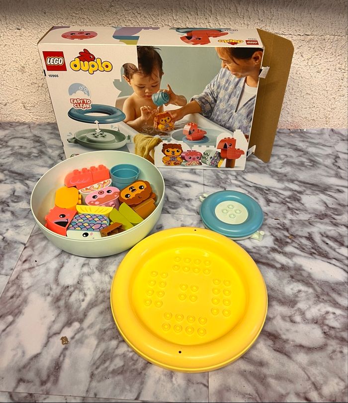 Île flottante Lego Duplo Bébés et enfants Jouet de bain comprenant 4 figurines d’animaux L’île se divise en 2 sections flottantes et peut être facilement nettoyée.