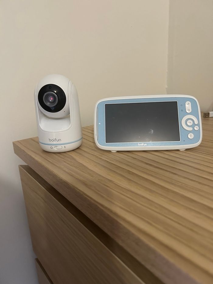 Vend caméra bébé en parfait état de fonctionnement Marque BOIFUN Vision nocturne infrarouge invisible Détection sonore Détection de la température et de l’humidité Système VOX 8 berceuses intégrées Zoom x3