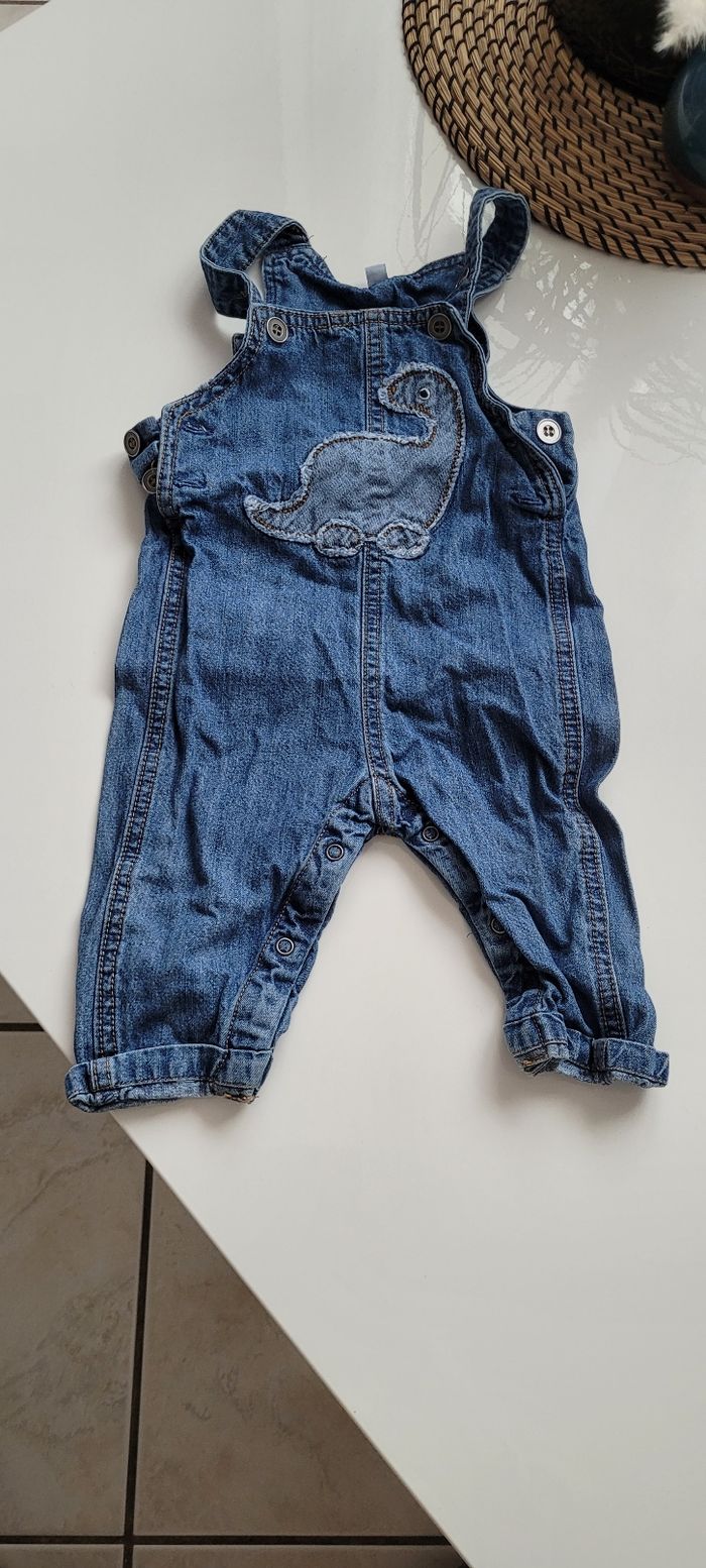 Lot de 2 salopettes en jean avec dinosaure 6m et salopette d été marron cadet rousselle 6m