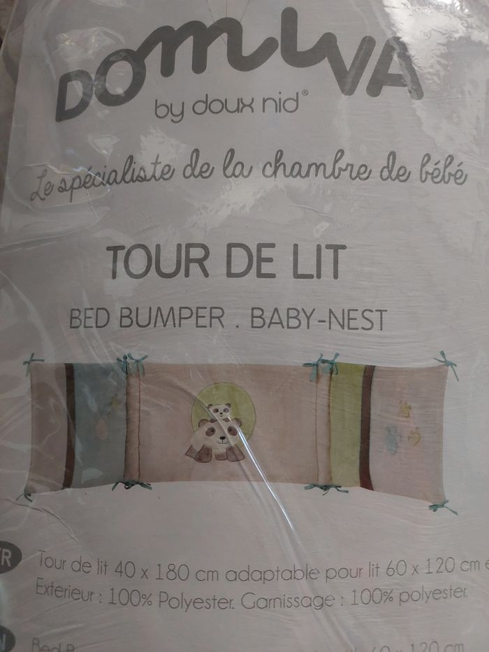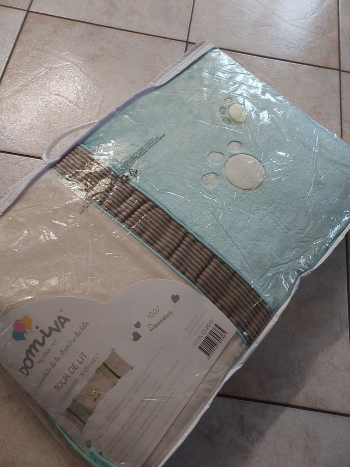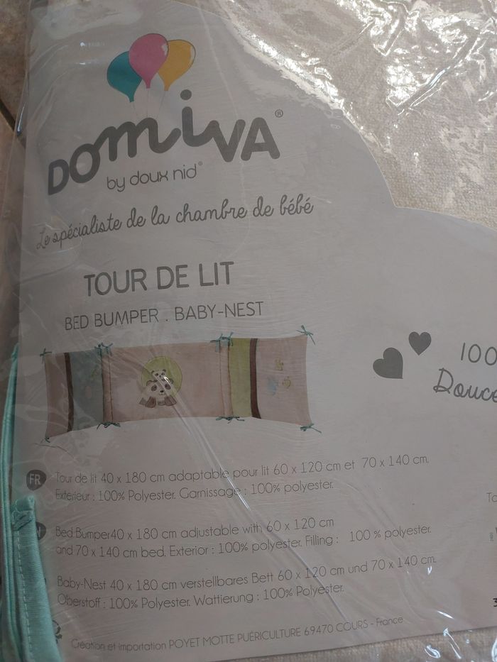 Bonjour Je vends ce tour de lit Marque domiva Neuf Changement de deco 40 cms de large et 180 cms de long S adapté aux lit à barreaux 60/120 cms et 70/140 cms