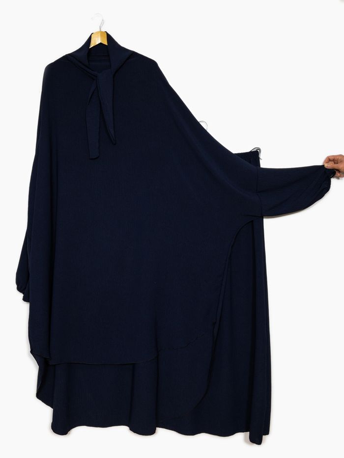 Jilbeb -Ensemble deux pièces en jazz (haut long 130 cm + jupe) taille unique (équivalent 36-50 pour femme). Tissu fluide très agréable à porter, manche avec élastique. Composition : Polyester (100%) Possibilité de porter que le haut avec un pantalon simple. Autre couleur disponible : Taupe Pour toute information complémentaire, n'hésitez pas à me contacter par message.