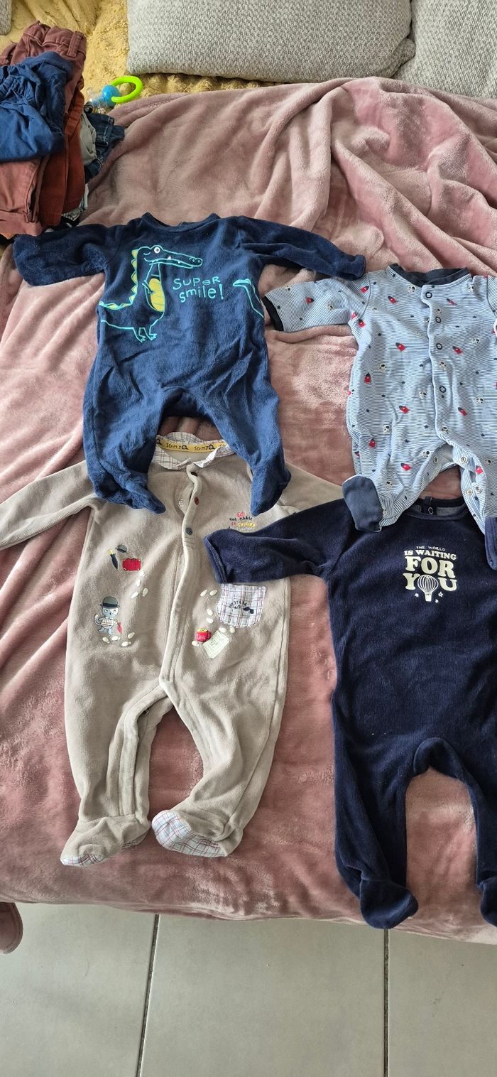 Lot 3 mois garcon Pyjamas bodys salopettes maillots ML combipilote gilets pantalons .... De plusieirs marques tape a l oeil obaibi sergent major orchestra kiabi etc
