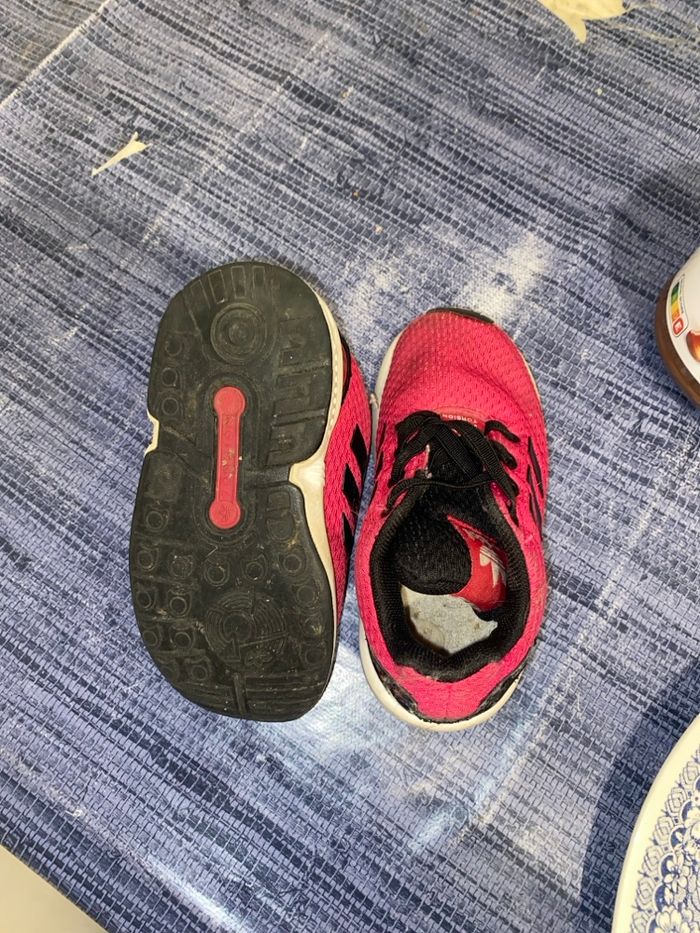 Bonjour, Je vend paire de baskets en tissus rose et noir de marque adidas , taille 22 .