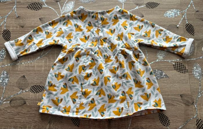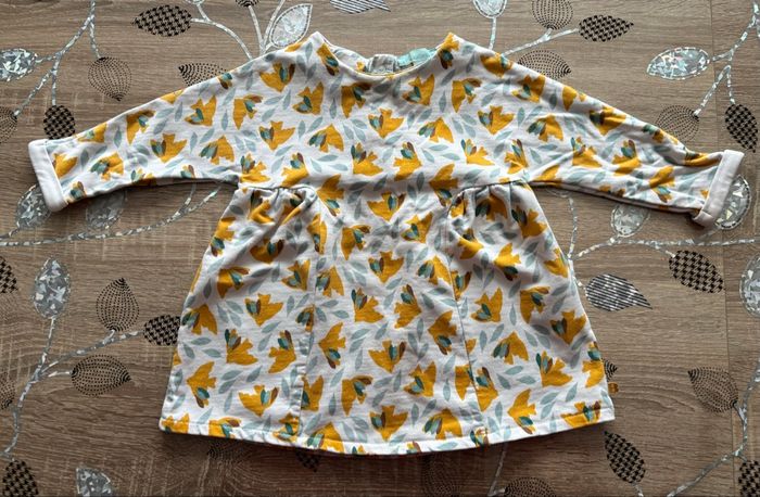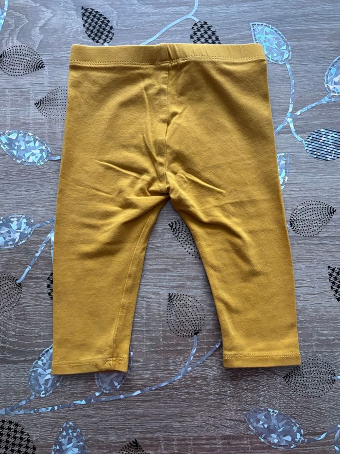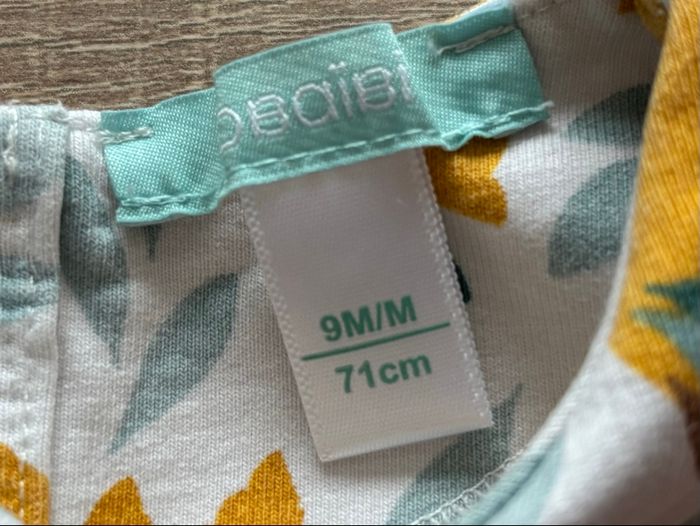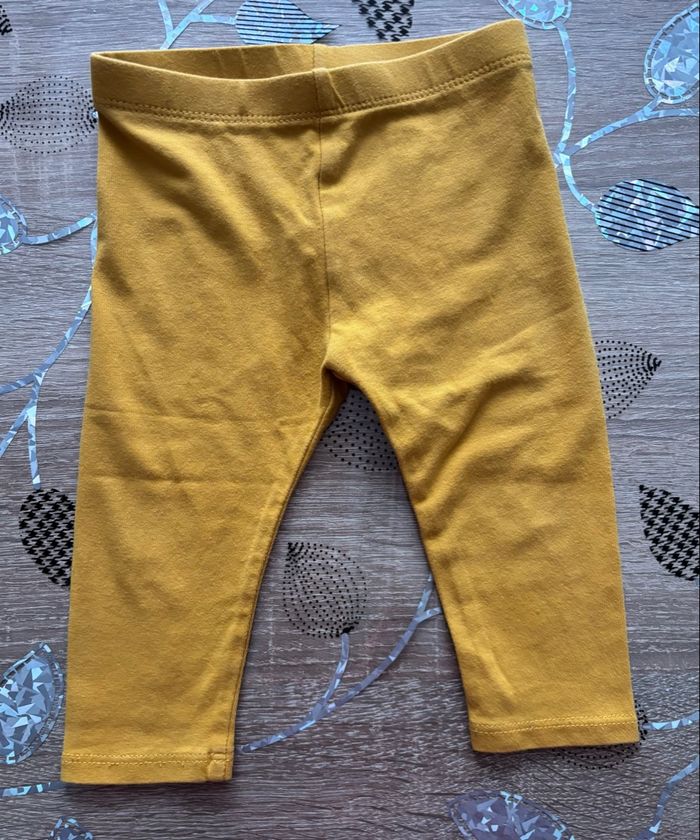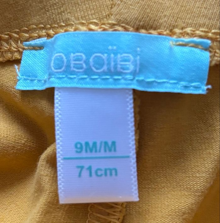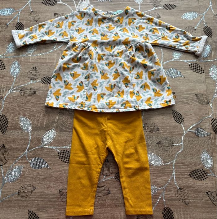 Joli ensemble bébé composé d’une tunique manches longues à motif feuilles dans les tons moutarde et d’un legging uni moutarde assorti. Tunique avec coupe légèrement évasée, très confortable et facile à porter. Parfait pour l’automne ou la mi-saison. En bon état Marque : Obaibi Taille : 9 mois