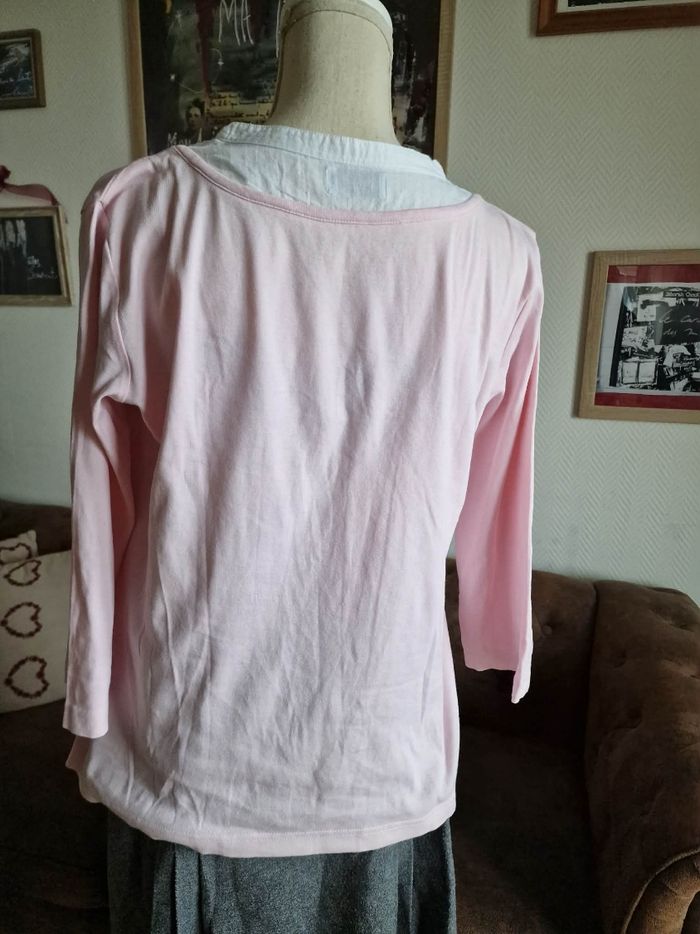 Tee-shirt manche longue 2 en 1 rose et blanc  - photo numéro 10