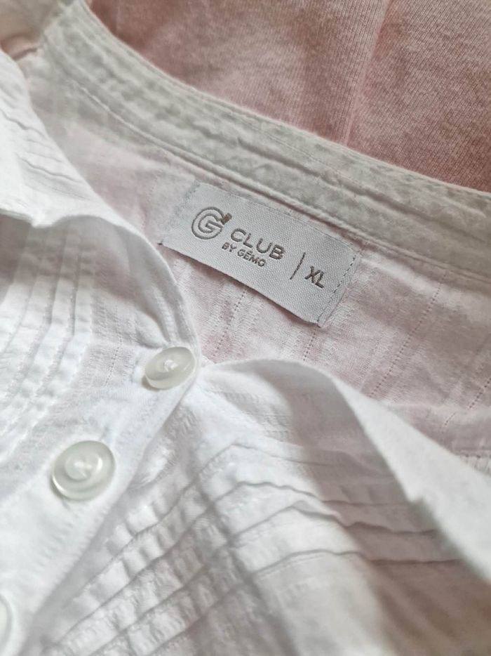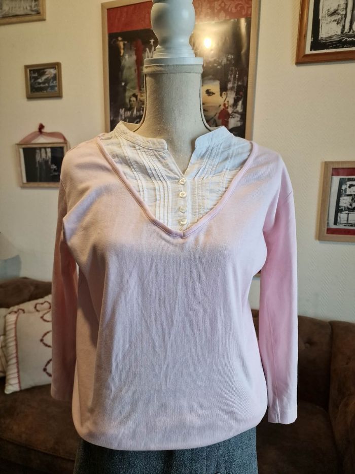 ​Haut 2-en-1 Rose & Blanc - G-Club - Taille XL ​Description : Vends joli haut effet "deux-en-un" : pull léger rose pastel avec empiècement chemisier blanc à plastron plissé. Très confortable car 100% coton. ​Marque : G-Club by Gémo ​Taille noté XL,mais petit représente plus un M ​État : Très bon état ​💡 À SAVOIR : ​Je propose également la jupe grise et la veste (visibles sur les photos) dans mon dressing. N'hésitez pas à aller voir ! ​Réductions sur les lots activées : ​-10% dès 2 articles achetés. ​-20% dès 3 articles achetés. ​Profitez-en pour grouper vos achats et réduire les frais de port !