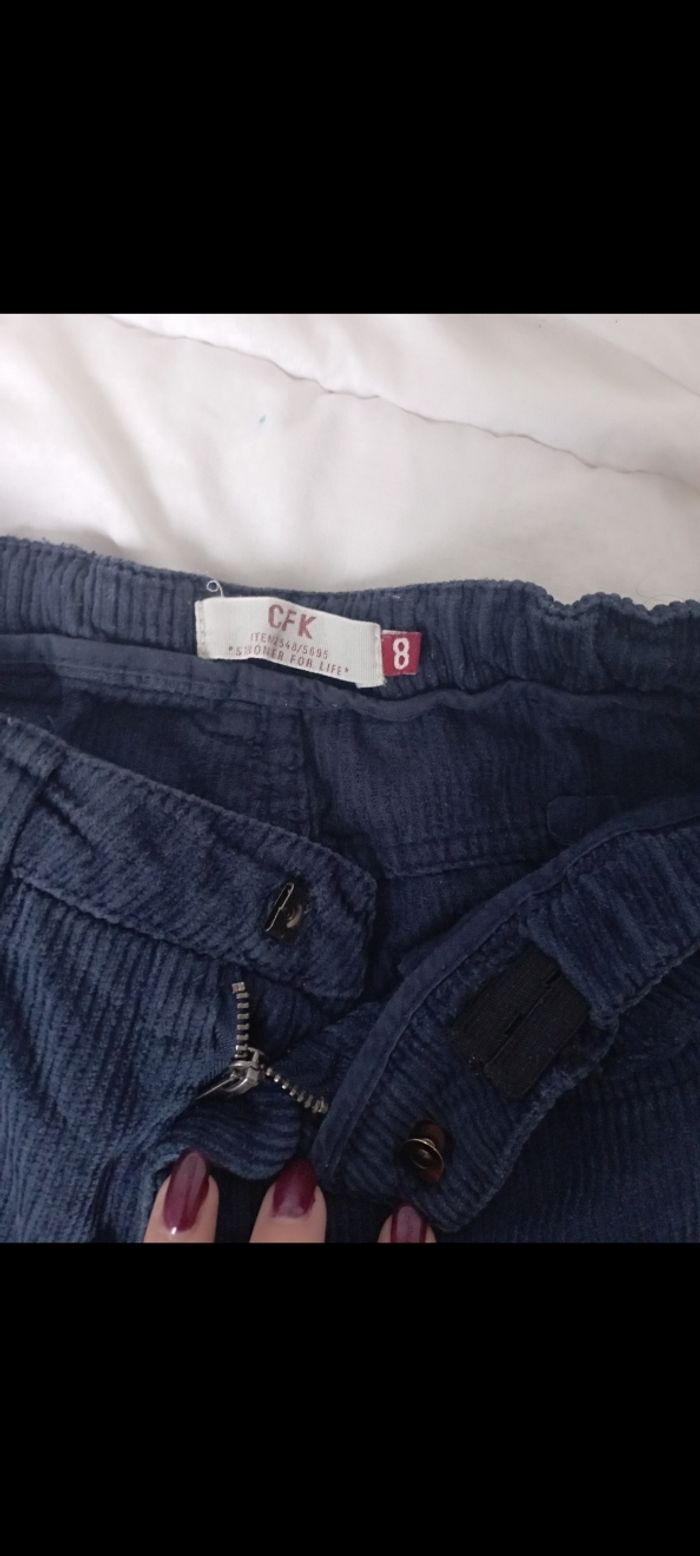 Pantalon bleu velours côtelé réglable CFK 8 ans 2€5 - photo numéro 2