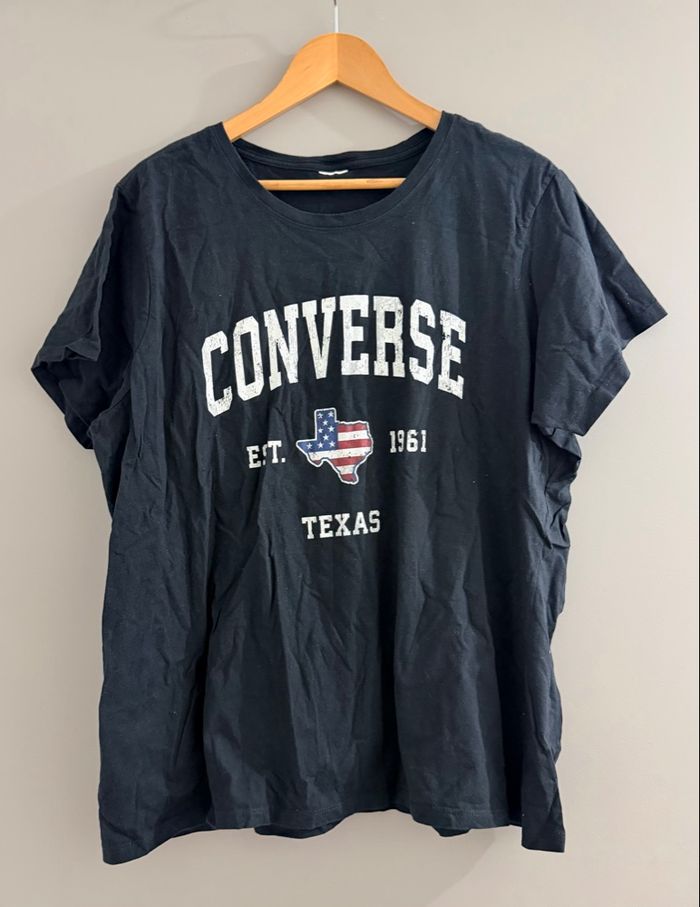 🌸Tee-shirt femme Converse Texas Tx Drapeau Américain vintage 🌸Couleur noir 🌸Marque Converse 🌸Taille 46/48 #modestyfrip 🛍️ #teeshirt #teeshirtfemme #teeshirtfemme46 #teeshirtfemme48 #femme46 #femme48 #femmexxl #femme3xl #converse #conversefemme