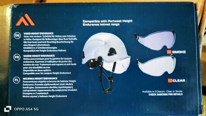 visière panoramique de la marque Portwest, un équipement de protection idéal pour les activités de bricolage. - Type de produit : Visière panoramique - Marque : Portwest - Modèle : Height Endurance Visor - Couleur : transparent en polycarbonate - Caractéristiques : Antibuée, anti-rayures et traitement anti-buée pour une durabilité accrue , permet de porter des lunettes de vue , État neuf. 10€