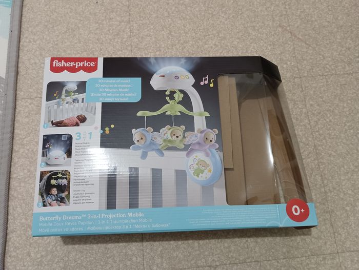 Mobile " doux rêves papillons " de fisher price En très bon état, juste les dessins sur les boutons un peu effacé ( voir photos )