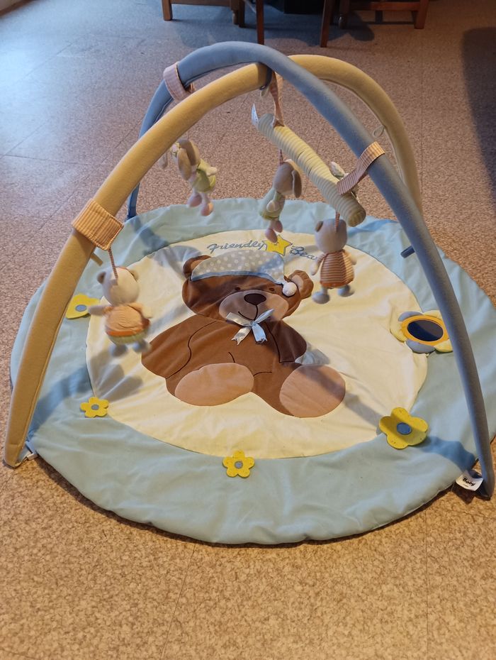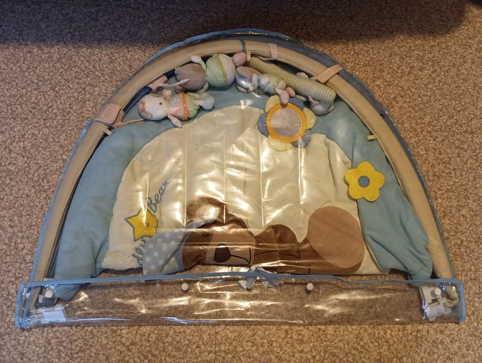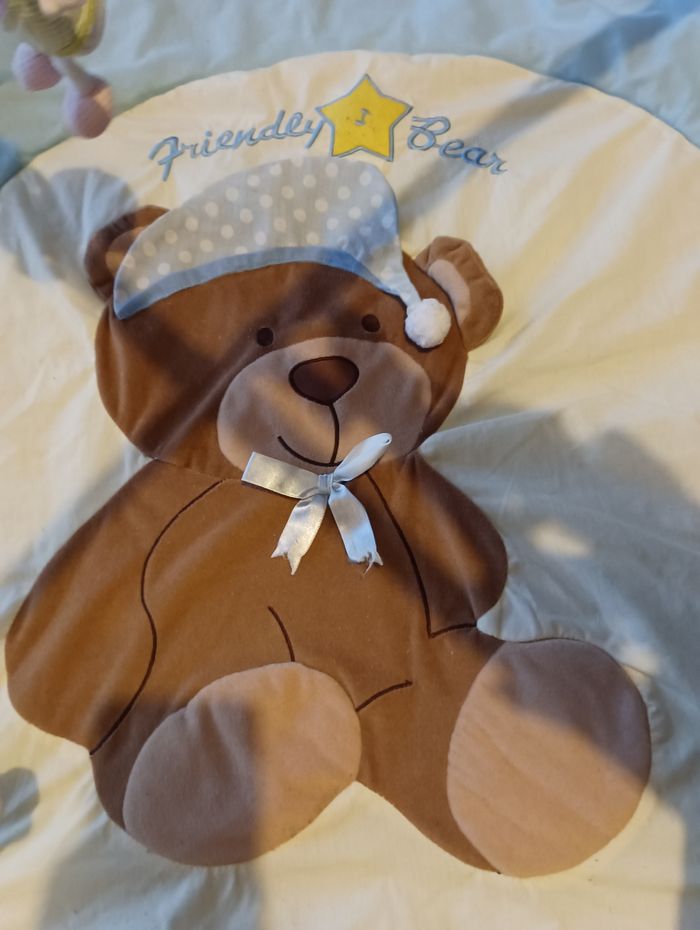 Très peu servi car il était chez les grands parents Très bon état, présence de quelques bouloches suite au lavage Le chapeau de l'ours crépite , il y a un couineur au niveau du nez et un miroir