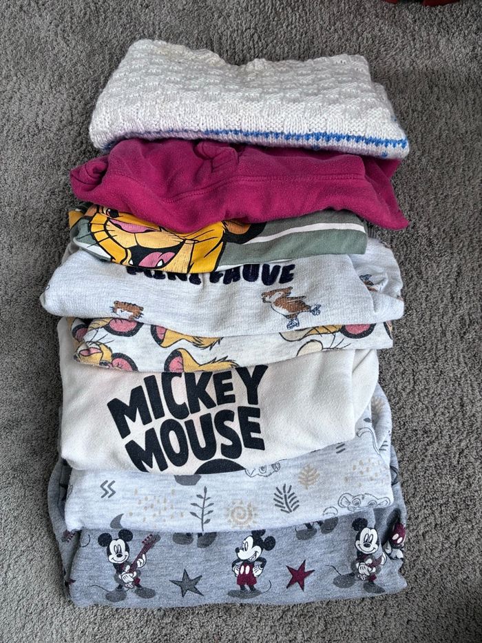 Lot de 8 pulls en bon état, certains présente des taches visible sur les photos Taille 9 mois diverses marques (visible sur les photos)