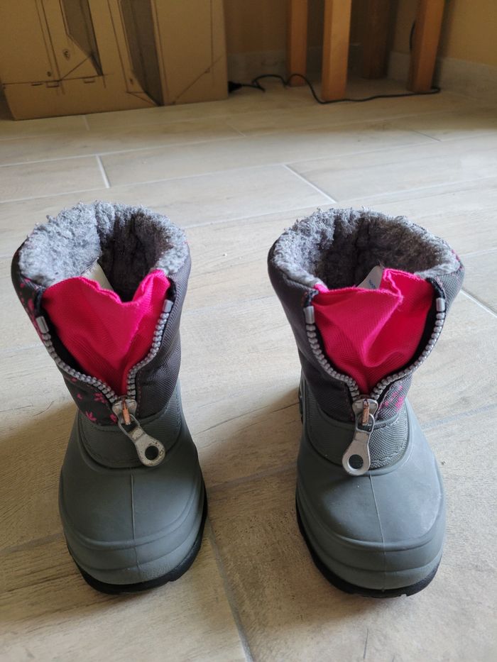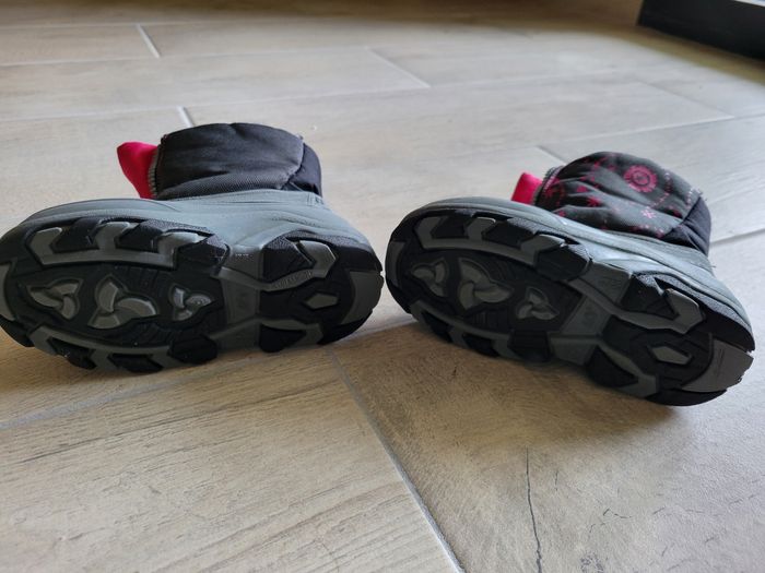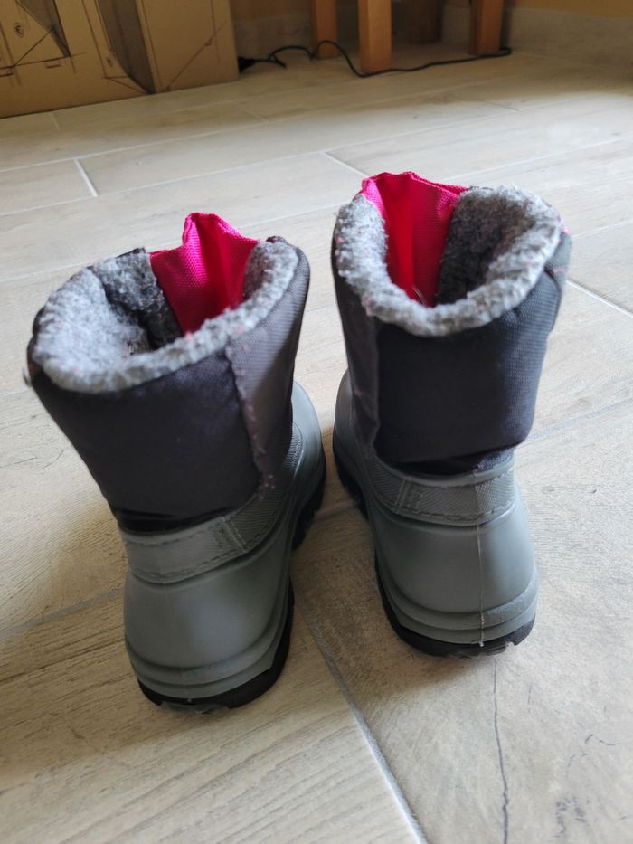 Bottes chaudes pour la neige ou le ski grises à motif rose. Rarement portées, aucune trace d'usure, juste lavées. Taille 24/25. Je ne connais pas le logo de la marque mais c'est une marque italienne.