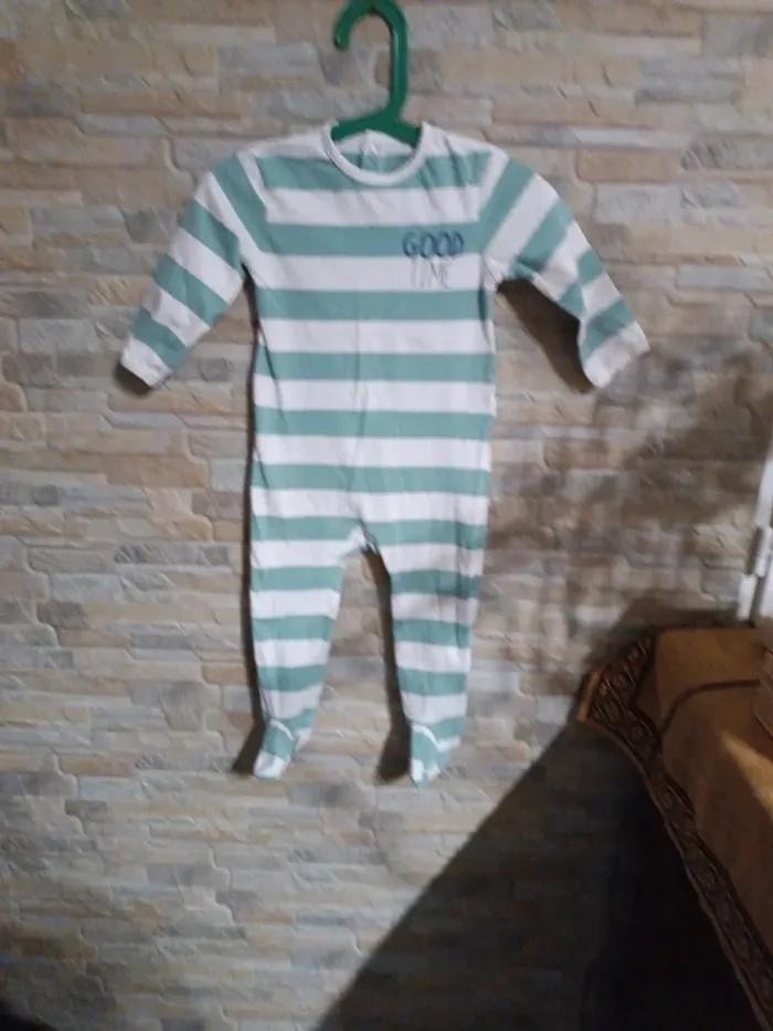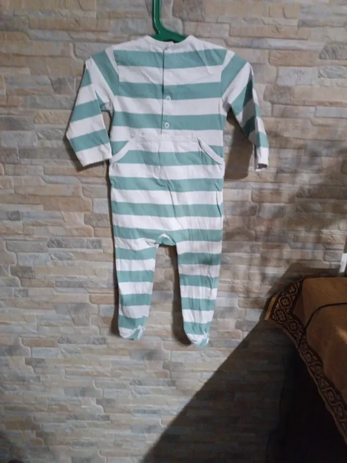 Pyjama blanc rayures vertes Kiabi 86-18/24M. Coton biologique. TBE