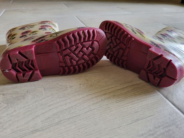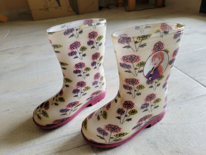 Bottes de pluie en très bon état, pas de trace d'usure, de la Reine des neiges en taille 26. Les bottes ont été lavées.