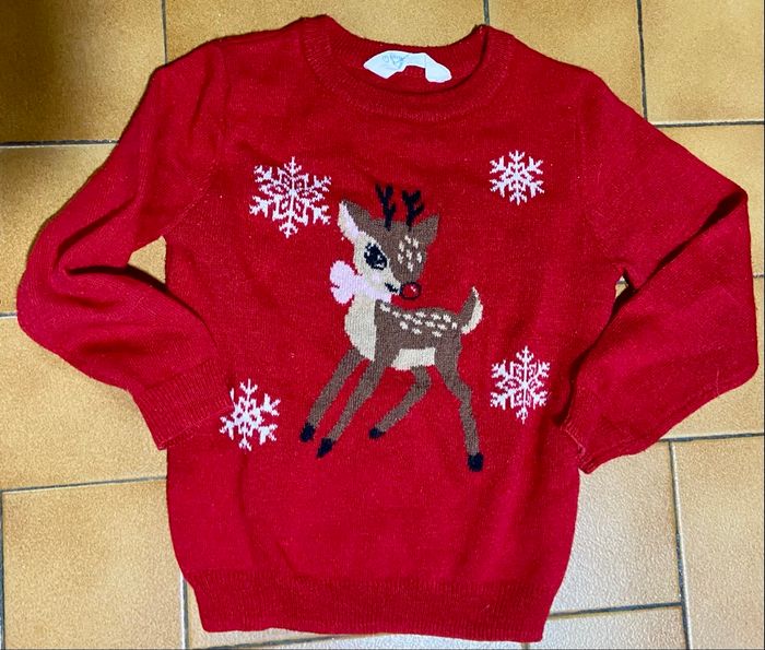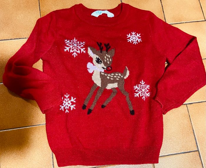 Pull rouge motif biche taille 2/3 ans primark - photo numéro 1