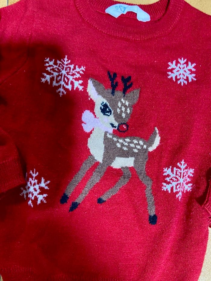 Pull rouge motif biche taille 2/3 ans primark - photo numéro 3