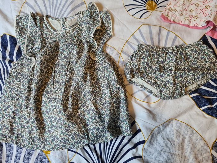 Lot 2 robes. 18 mois.  Fleurs rose. Mauve + bloomer  bout'chou - photo numéro 7
