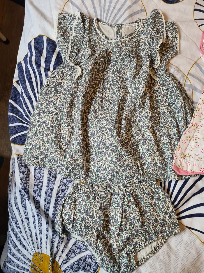 Lot 2 robes. 18 mois.  Fleurs rose. Mauve + bloomer  bout'chou - photo numéro 6