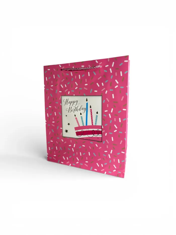 Sac cadeau joyeux anniversaire motif gâteau confetti rose 26 x 32 x 10 cm Neuf