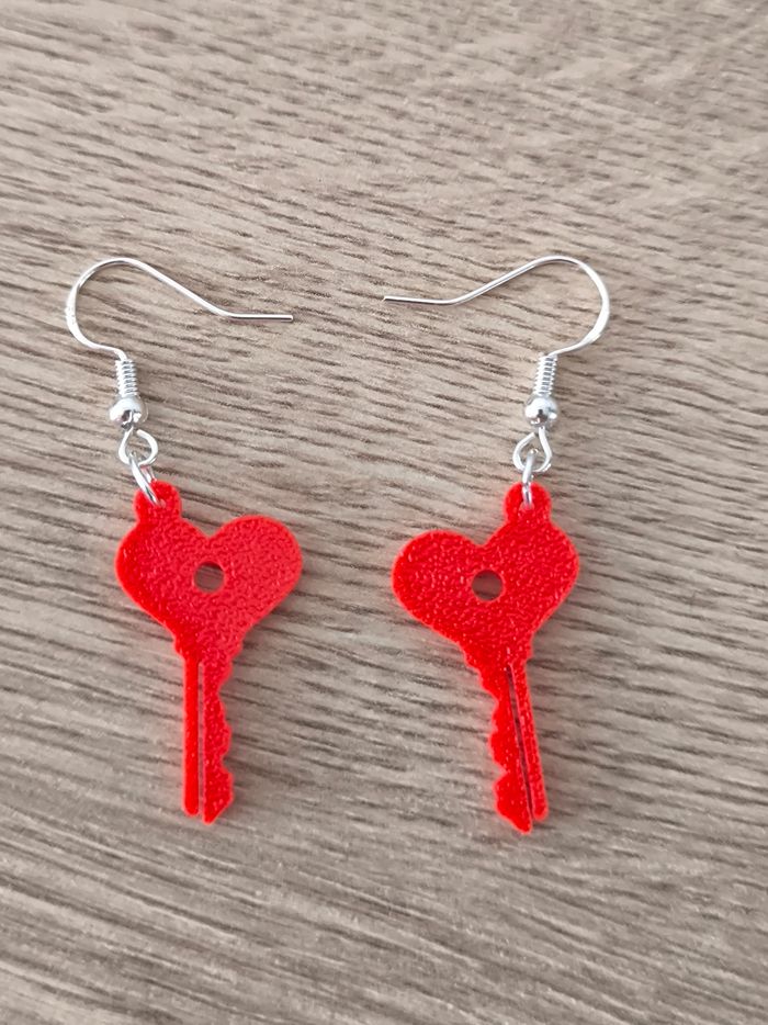 Boucles d'oreilles en impression 3D En forme de clé cœur rouge