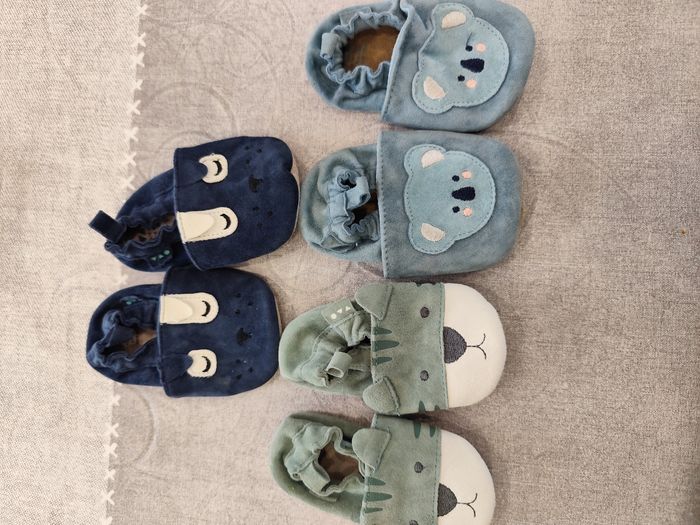 Chausson tape a l oeil pratiquement neuf 2 paires en 3 6 mois et la bleu ciel 6 12 mois
