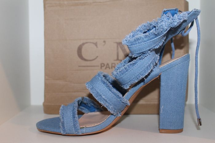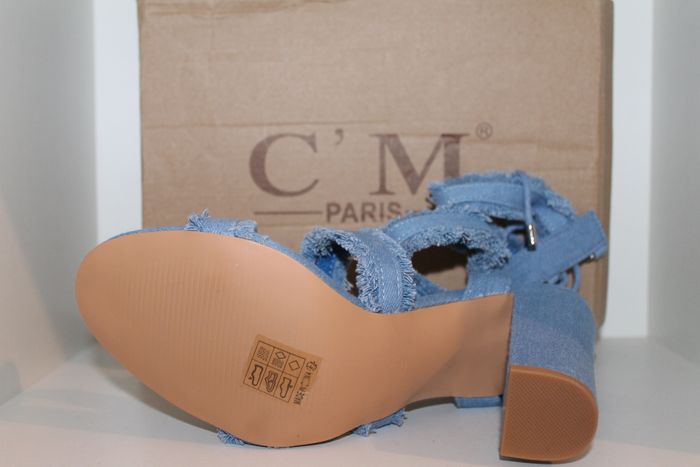sandales escarpins bleu style jeans pointure 40 neufs dans boite,très tendance et stylés,marque c'm paris. hauteur talon 11 cm. réf 1109. N'hésitez pas à faire un lot.