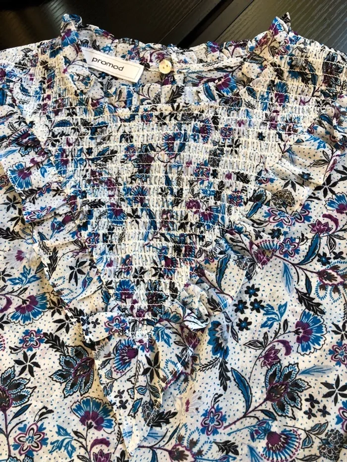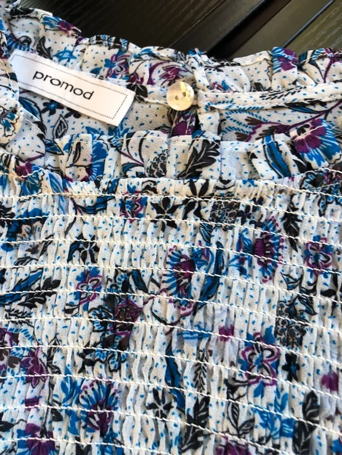 🏷️ Blouse voile Promod multicolore à dominante bleu/violet 📏 taille 36 🌸 blouse en excellent état 🌸 veste sans manche prune dans une autre annonce