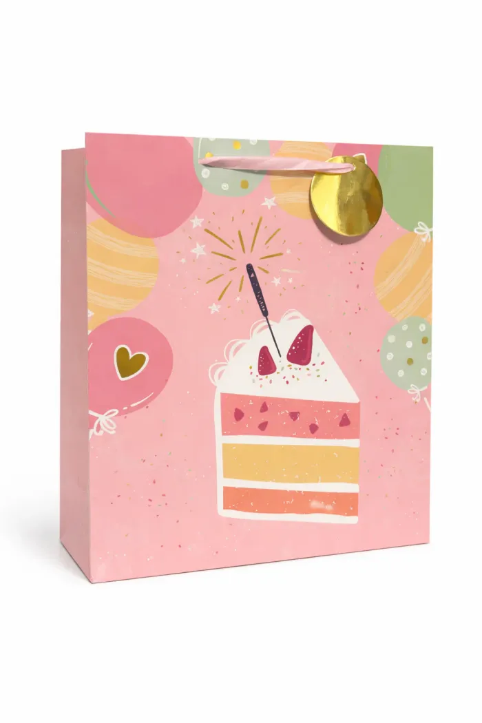 Sac cadeau anniversaire motif gâteau 26,5 x 33 x 14 cm Neuf