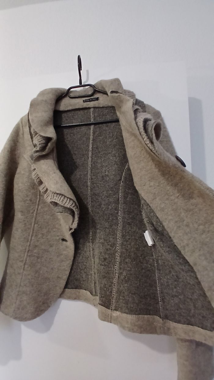 Une veste légère mais chaude en laine made in italy . Indiquer xxl mais taille plus petite un 38 .