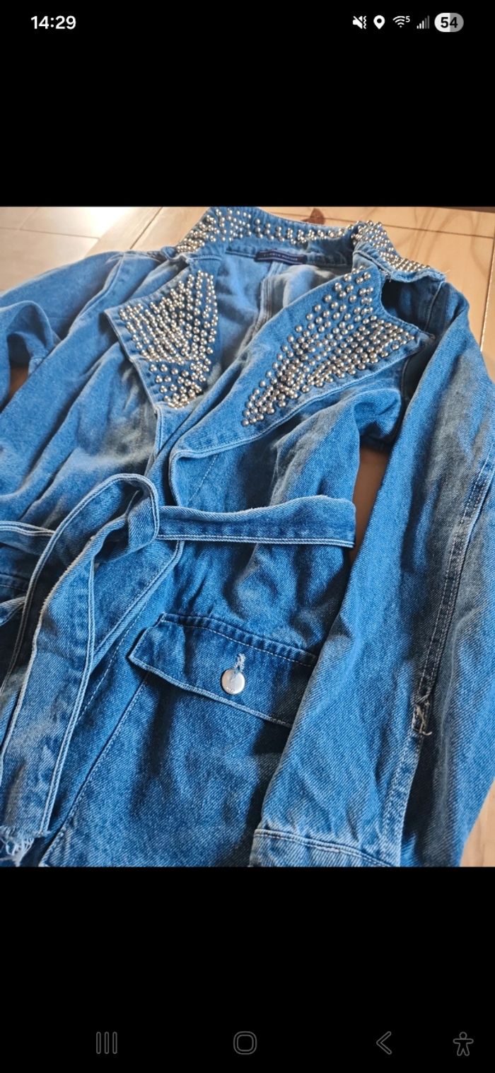 Magnifique veste a clous . État ́neuve. 30euros achetée 120euros Taille L 40 En jean épaisse Bon e qualité