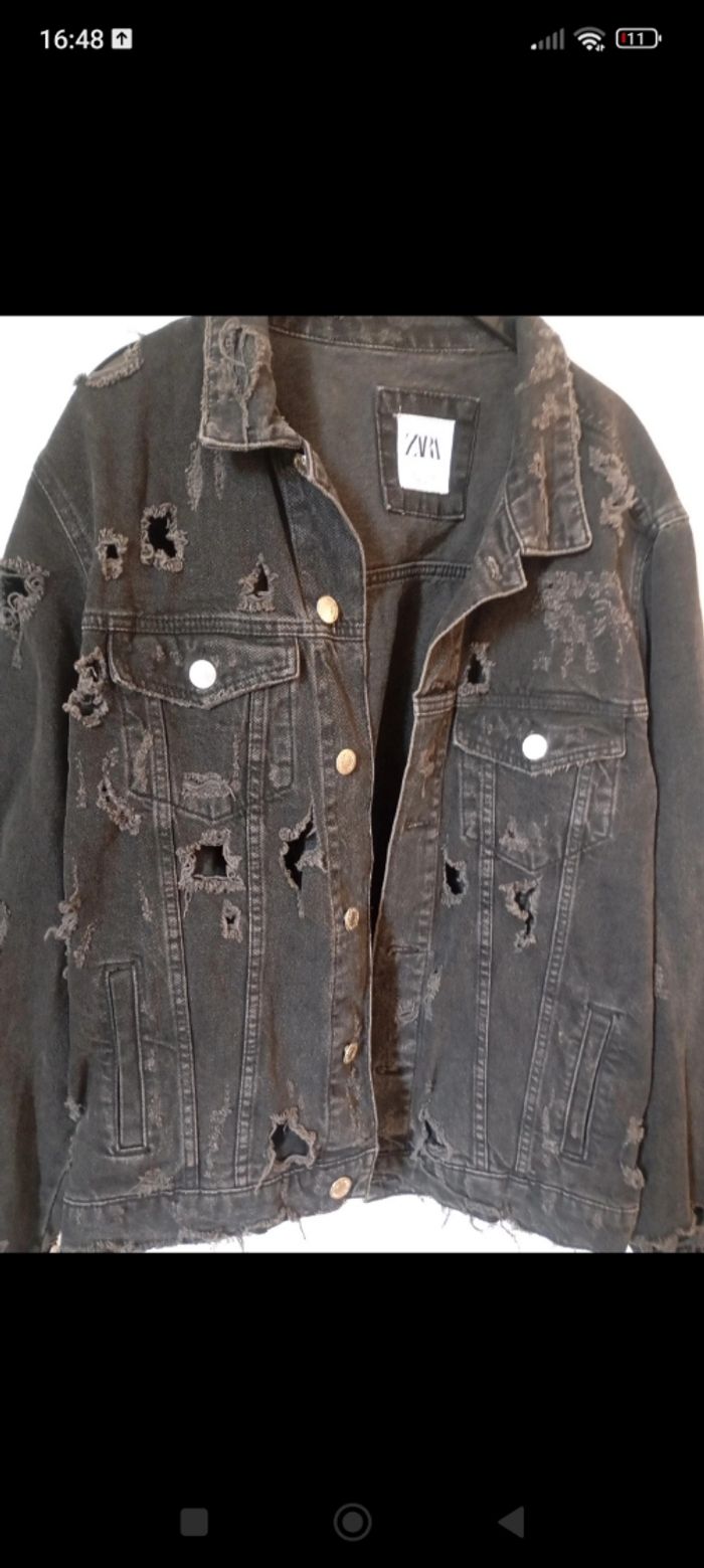 Veste en jeans oversize Zara super tendance taile L déchiré  - photo numéro 1