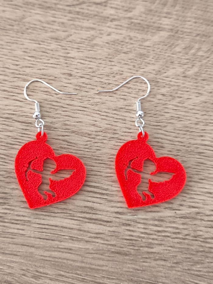 Boucles d'oreilles en impression 3D En forme de cœur rouge avec cupidon