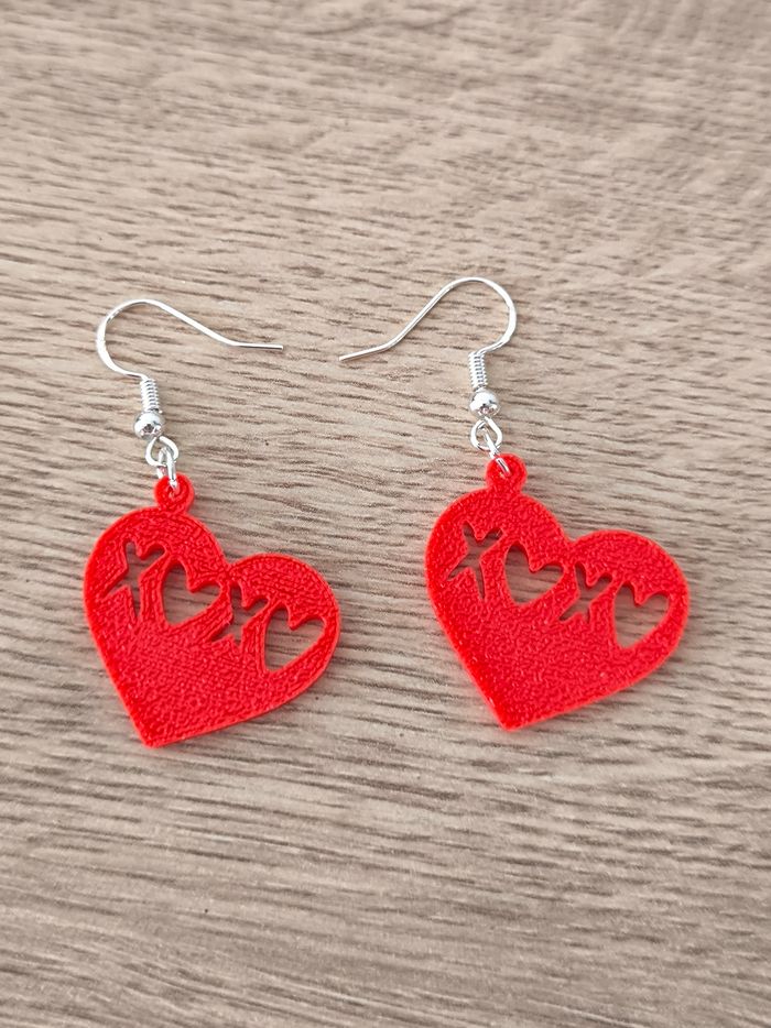 Boucles d'oreilles en impression 3D En forme de cœur rouge avec x❤️