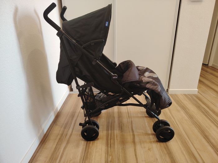 Poussette Chicco London - État comme neuf Je vends une poussette Chicco London, en parfait état, utilisée une seule fois. Elle est comme neuve, exactement comme sur les photos. V Légère et pratique, facile à transporter V Pliage compact, idéale pour la ville et les déplacements V Dossier inclinable, confortable pour le bébé V Harnais de sécurité V Capote pare-solei 11 Accessoires inclus: Chancelière offert - acheté séparément, article d'occasion déjà utilisé, mais propre et fonctionnel Housse de pluie.