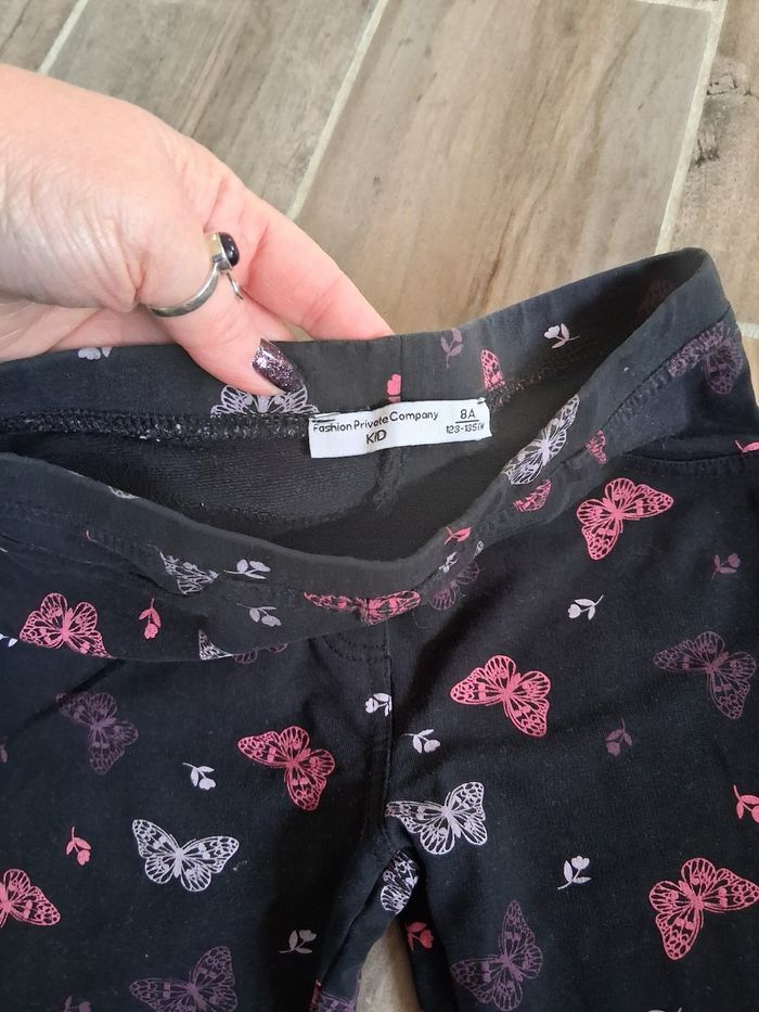Leggings ,taille 8 ans en bon état motif, usure à la jambe droite , motif papillon.